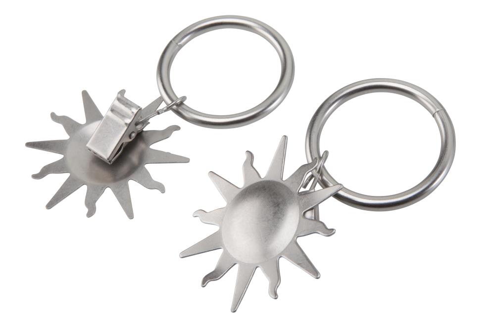 Diese hochwertigen Gardinenringe Matt-Chrom mit Dekoklammer Sonne sind ideal für Ihre Gardinenstange bis Ø 28mm.