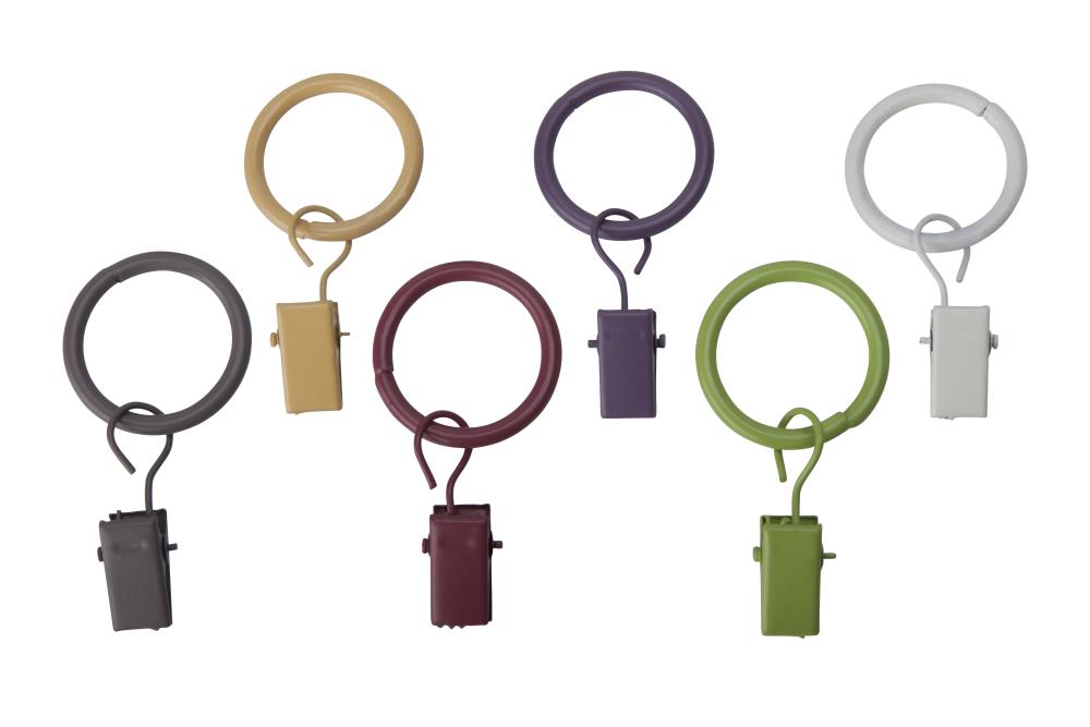 Gardinenringe mit Klammer - passend zu unseren farbigen Gardinenstangen Sets Ø 16 mm in den Farben weiß, himbeere, pflaume, safran, anisgrün und grau! Bringen Sie Leben in Ihr Zuhause. Gestalten Sie Ihre Fenster ganz individuell!