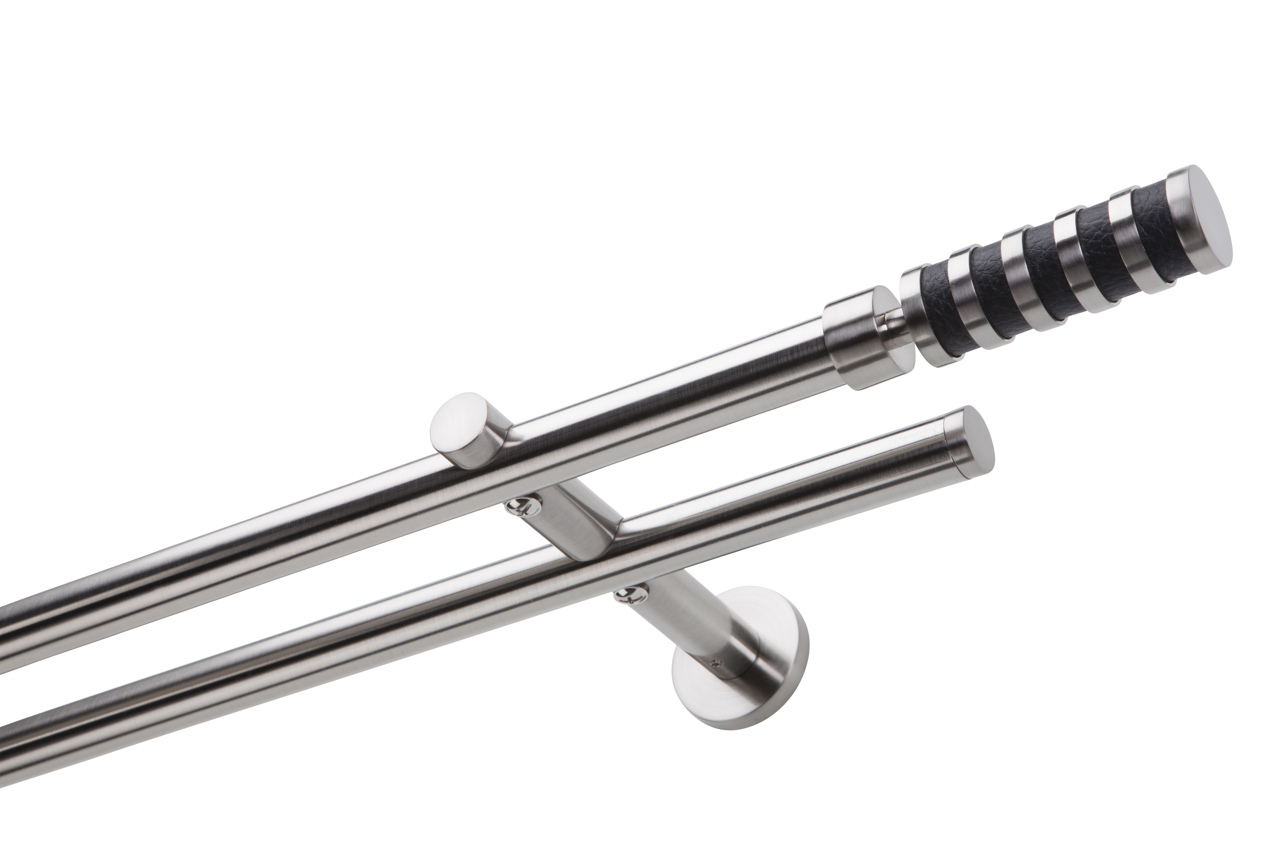 - Edle Gardinenstange Wandmontage in Edelstahloptik 2-läufig Ø 20 mm aus Stahl, Metall, Nickel gebürstet (Edelstahloptik)