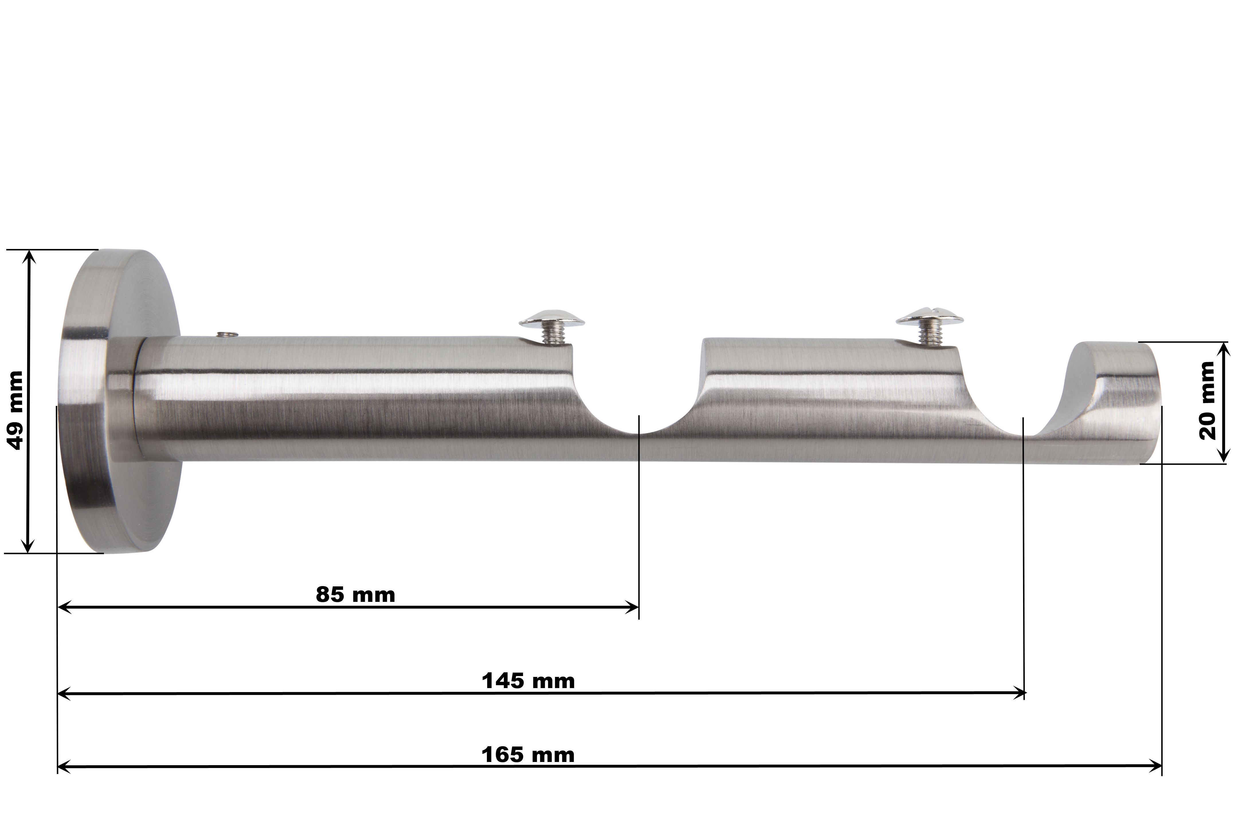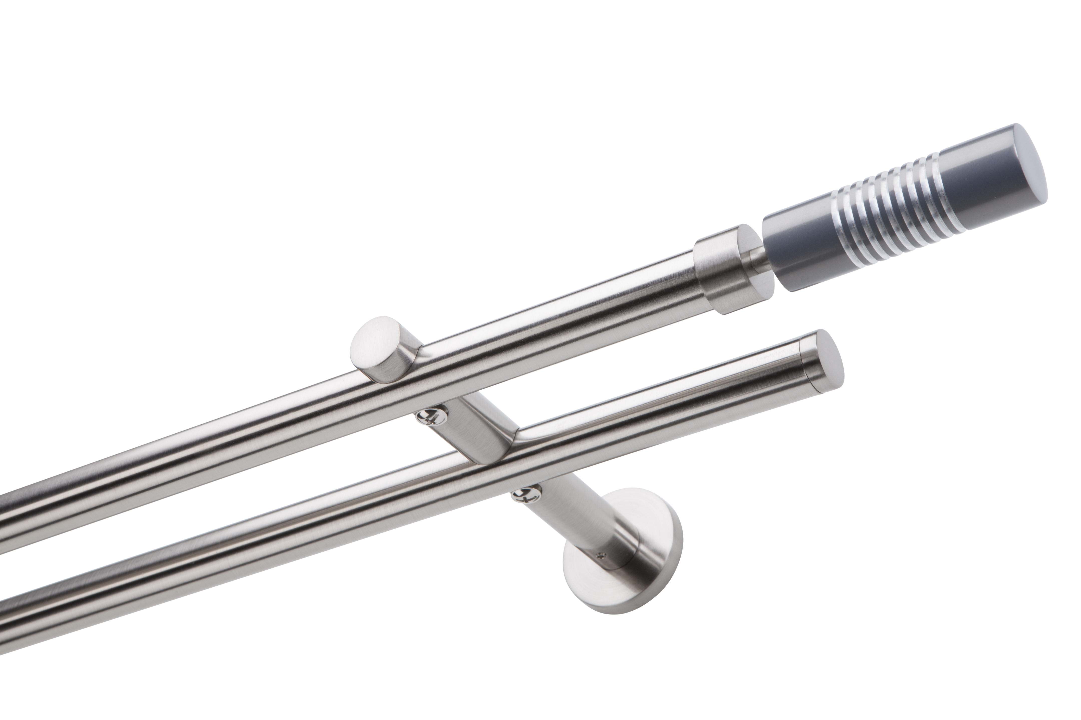 - Edle Gardinenstange Wandmontage in Edelstahloptik 2-läufig Ø 20 mm aus Stahl, Metall, Nickel gebürstet (Edelstahloptik)