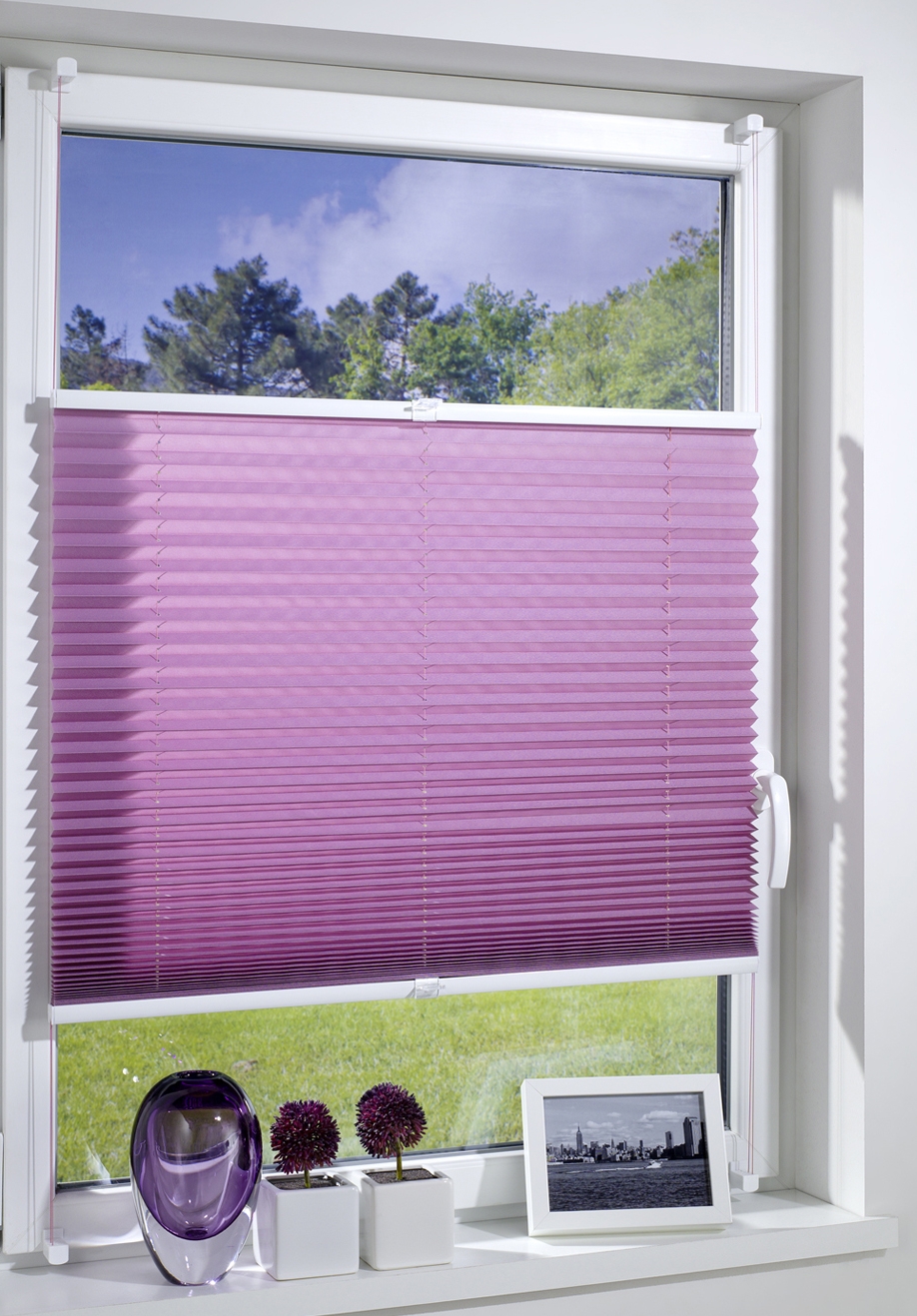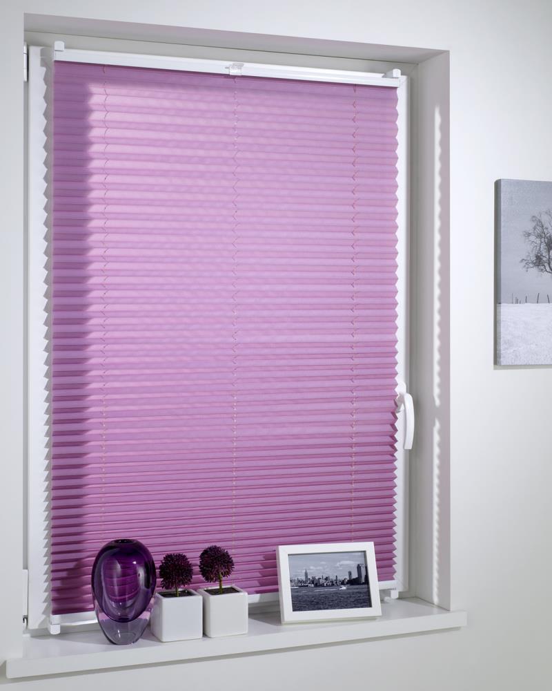 Eigenschaften "DécoProfi Plissee ohne Bohren Flieder/ Altrosa I Verspannte Plissees mit Klemmträger / Klemmfix"