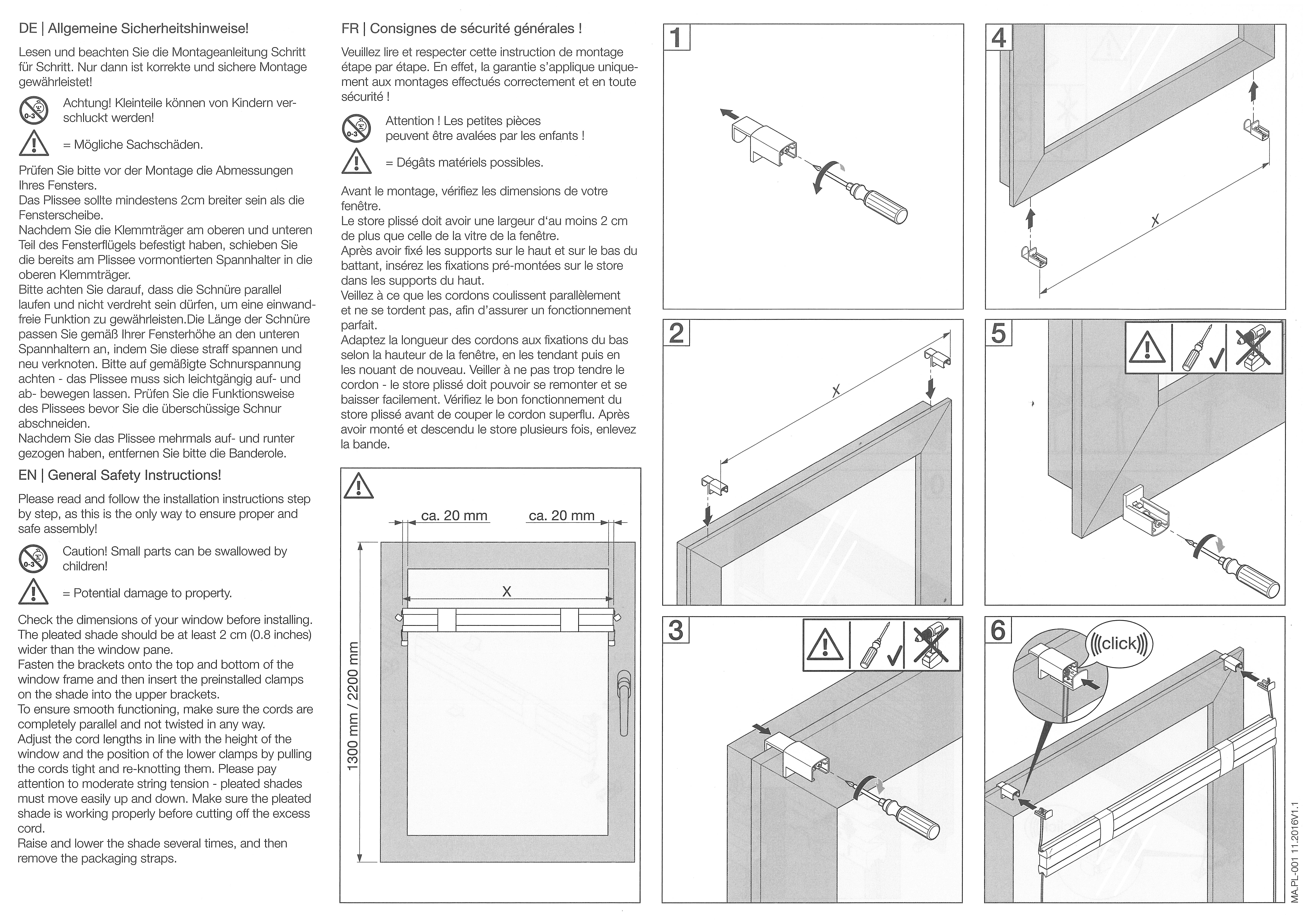1 Plissee mit 4 Stück Klemmträgern bis 22 mm Falzstärke, Montageanleitung