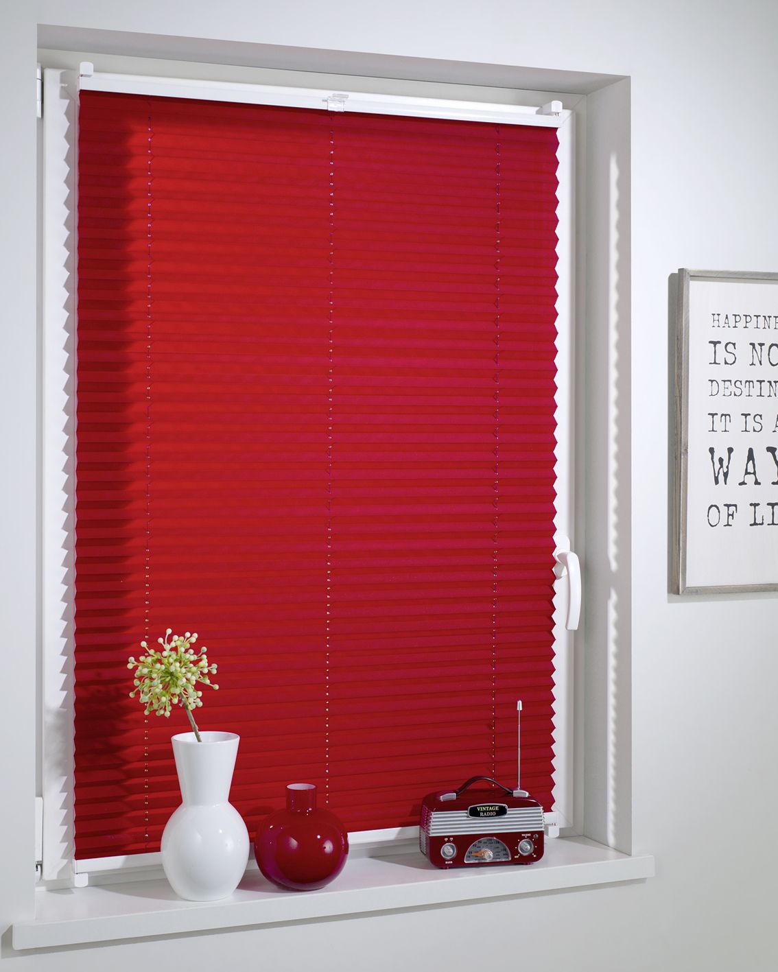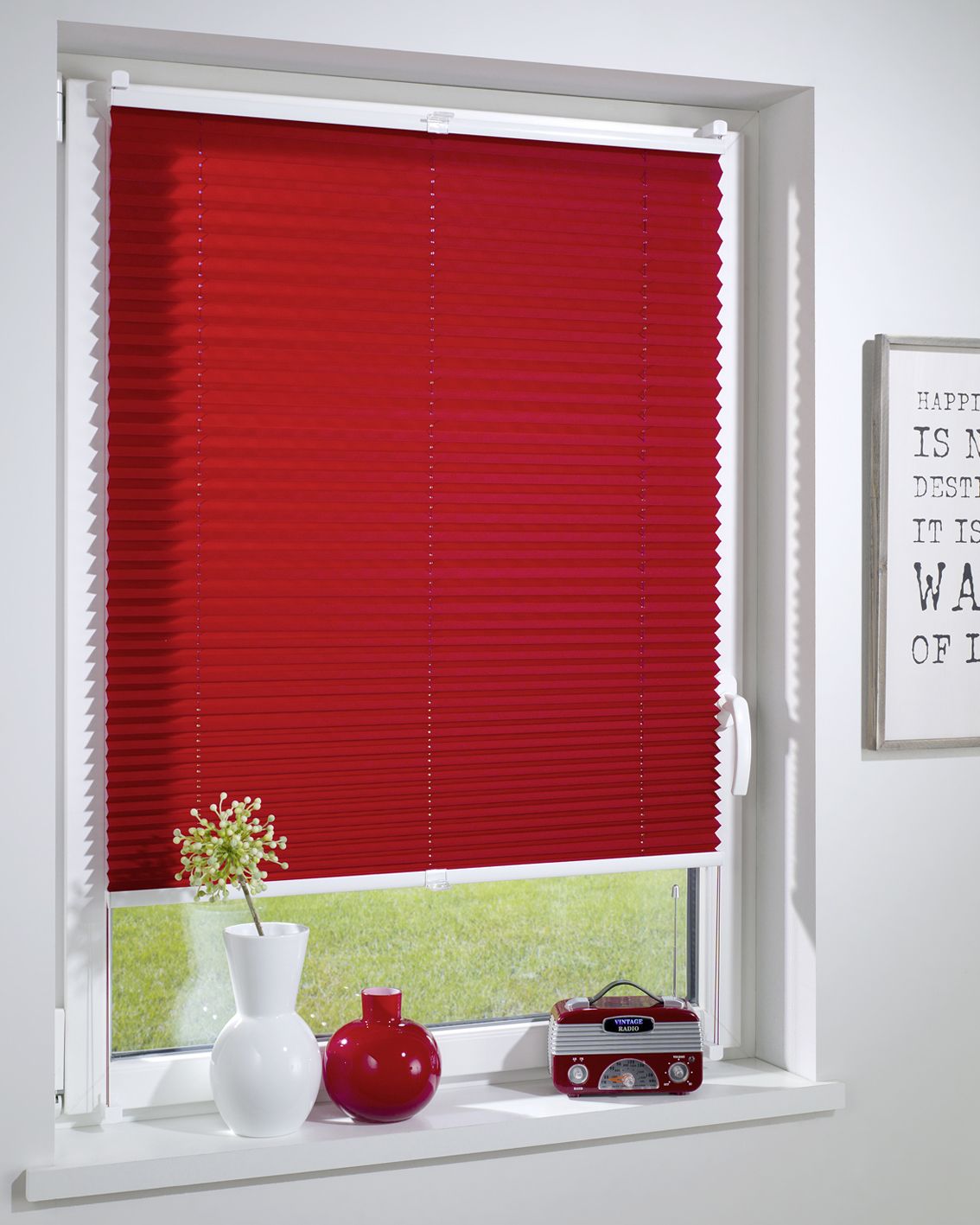 Eigenschaften "DécoProfi Plissee ohne Bohren Rot I Verspannte Plissees mit Klemmträger / Klemmfix"