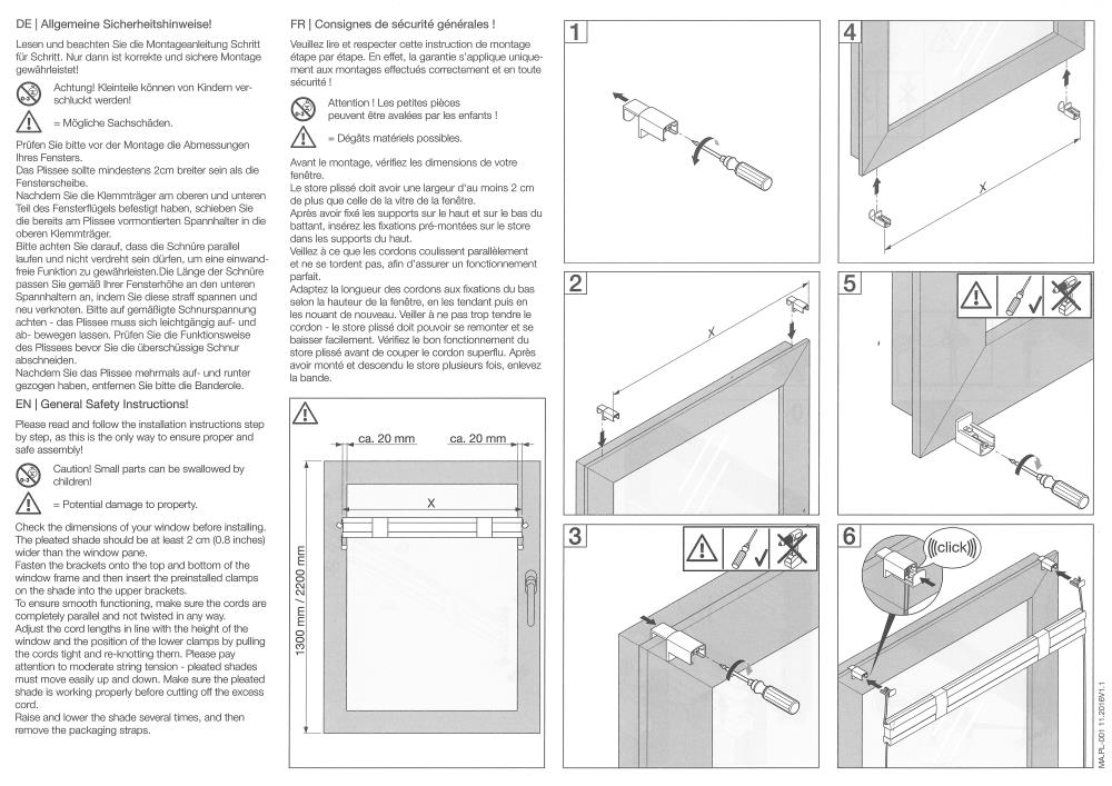 1 Plissee mit 4 Stück Klemmträgern bis 22 mm Falzstärke, Montageanleitung