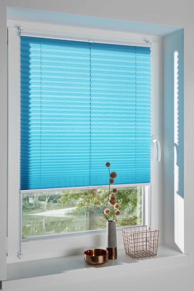 Eigenschaften "DécoProfi Plissee ohne Bohren Wasserblau / Türkis I Verspannte Plissees mit Klemmträger / Klemmfix"