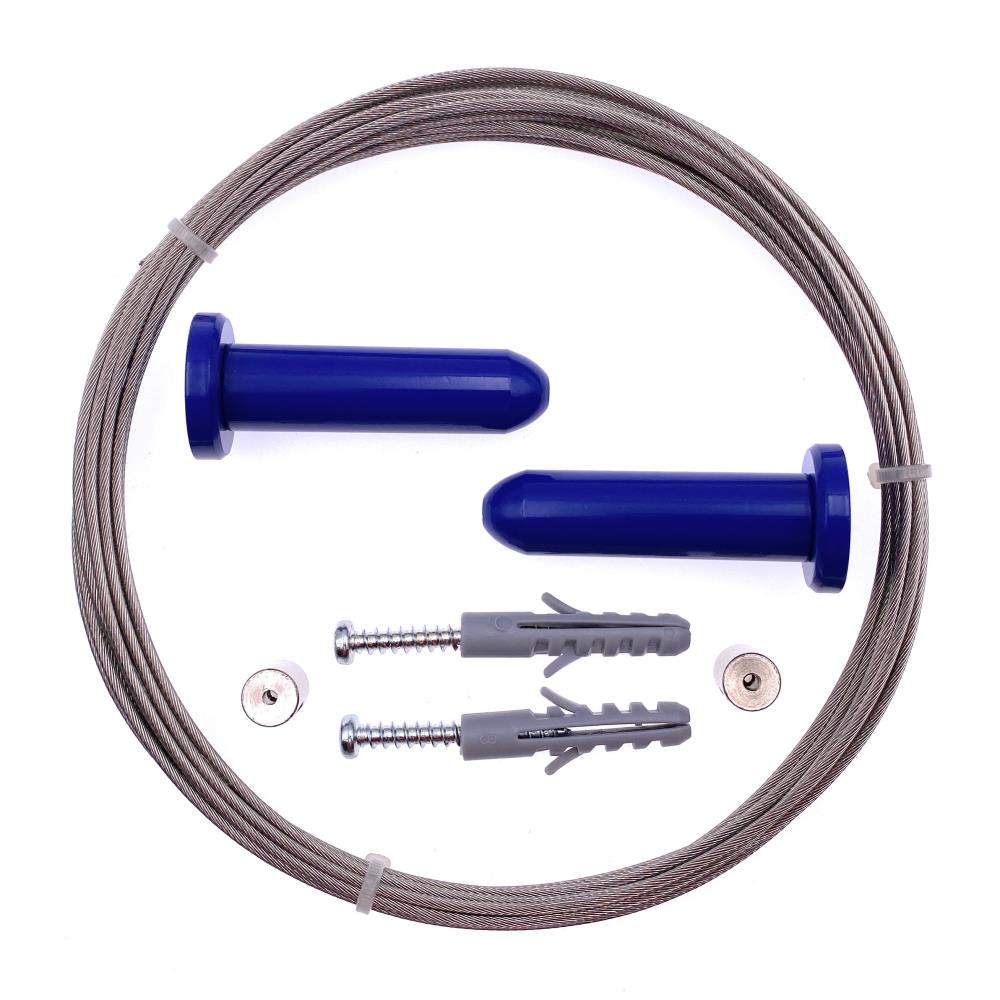 Produktinformationen "DécoProfi Seilspannsystem "TORRE" Messing Blau lackiert Gardinenstange Seil 5m Edelstahl (Nirosta) / Silberfarben"