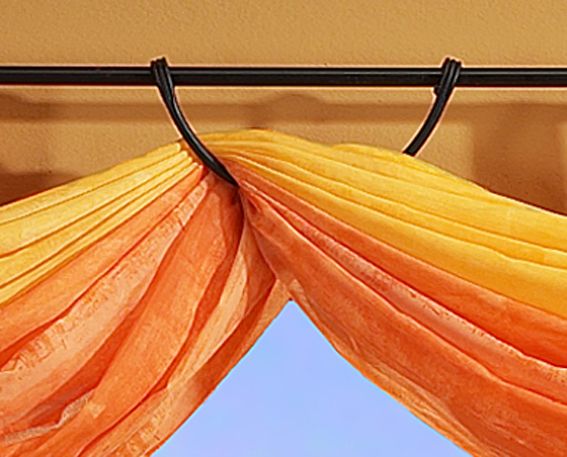 Schönes Ambiente durch dekorative Gestaltungsmöglichkeiten Ihrer Gardinen. Per Freihanddekoration können sie Ihre Gardinen / Stoffe drapieren. Einfach den Drapierbügel an Ihre Gardinenstange hängen und den Stoff ganz nach Wunsch dekorieren. Der Drapierbügel ist aus geschmiedetem Stahl, Farbe schwarz, und für Gardinenstangen bis 20 mm Durchmesser geeignet.