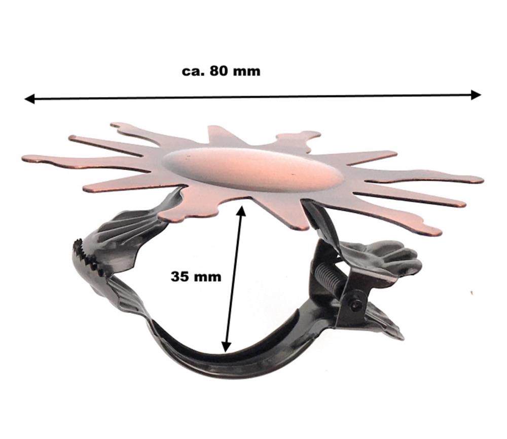 Eigenschaften "DécoProfi Donauklammer Ø 35 mm Motiv SONNE antik kupfer, 2 Stück"