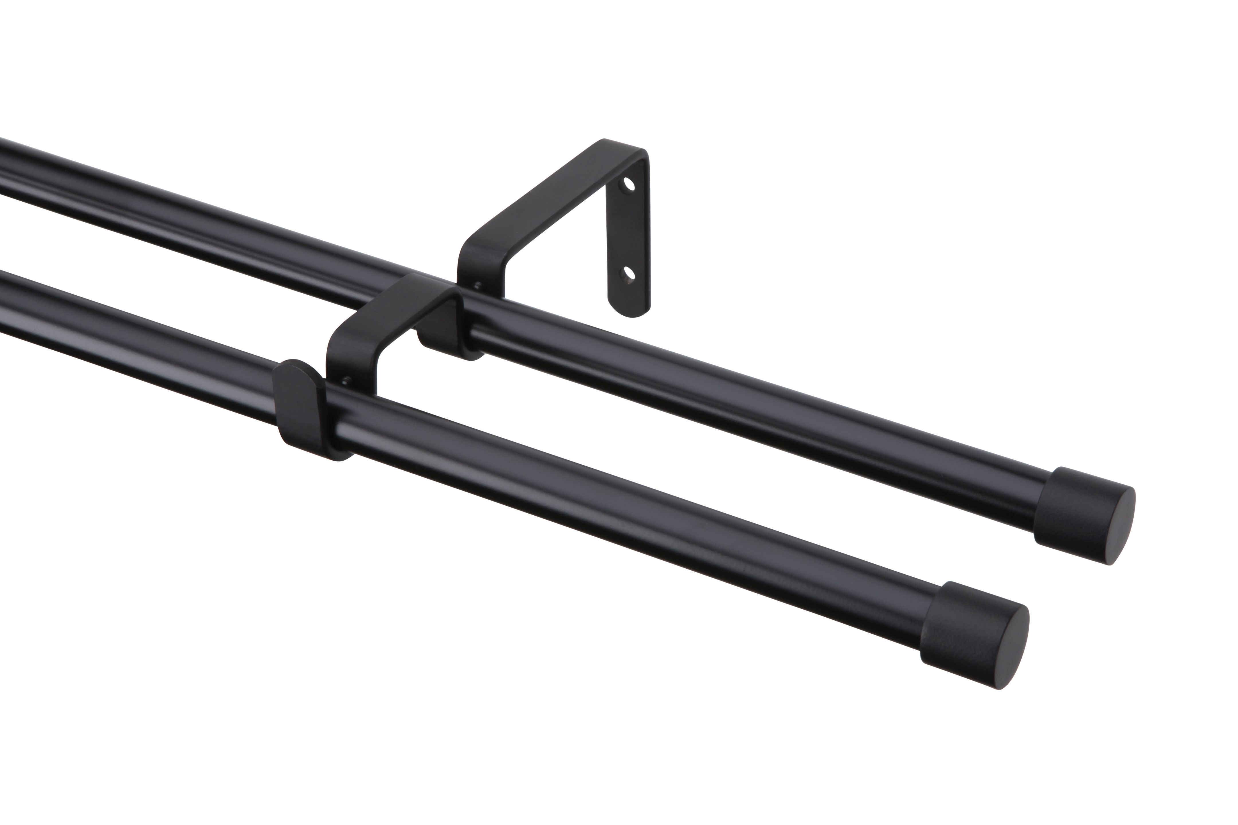 Gardinenstangen-Set Ø 16 mm in schwarz, 2-läufig. Klassisches Design für Ihr Zuhause!
