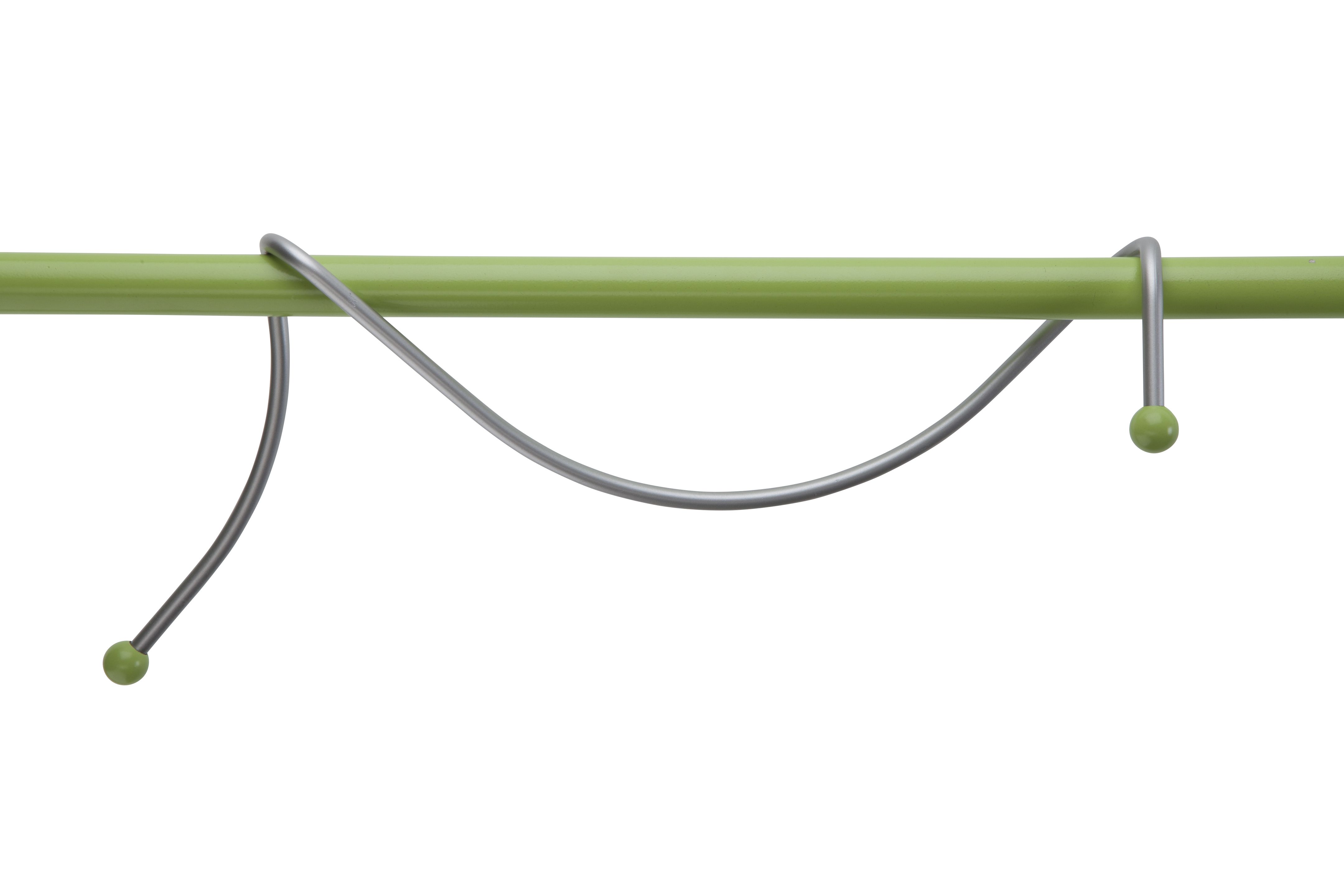 - Der Wandabstand des Trägers beträgt ca. 85 mm bis Rohrmitte. Endstück "Kugel" Anisgrün (Pantone 375).